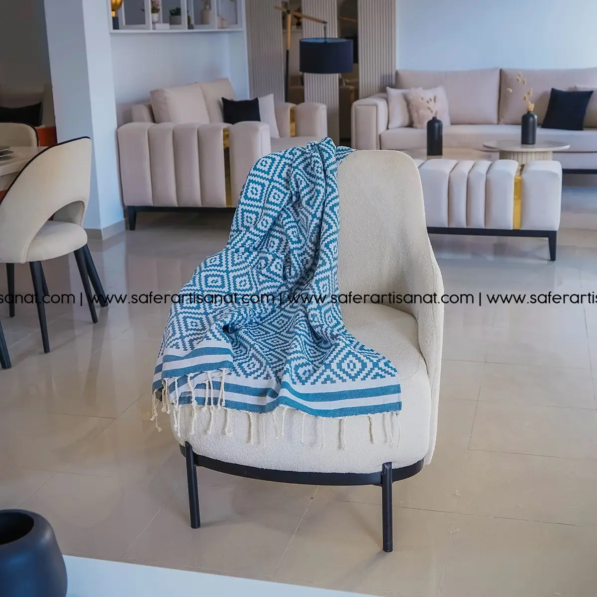 Transformez votre espace avec l’élégance unique de nos jetés de canapés. Que ce soit pour une journée ensoleillée à la plage, une soirée confortable sur le canapé ou comme couvre-lit élégant, nos jetés allient sophistication et confort pour une atmosphère luxueuse dans votre intérieur.